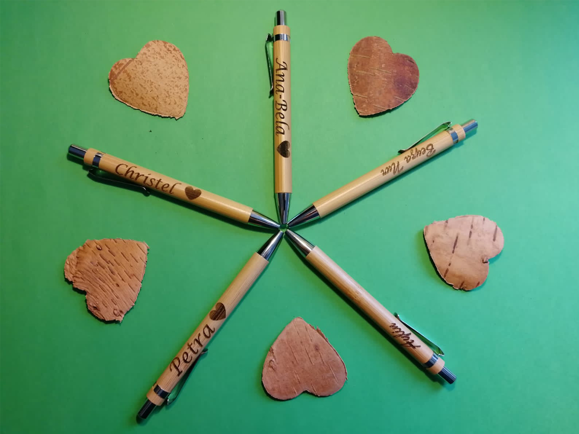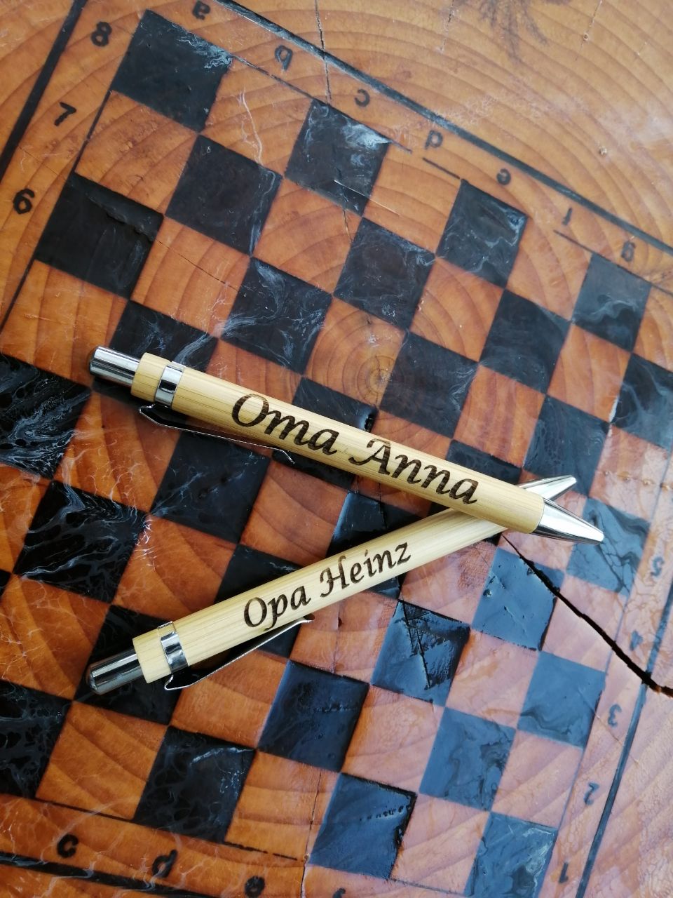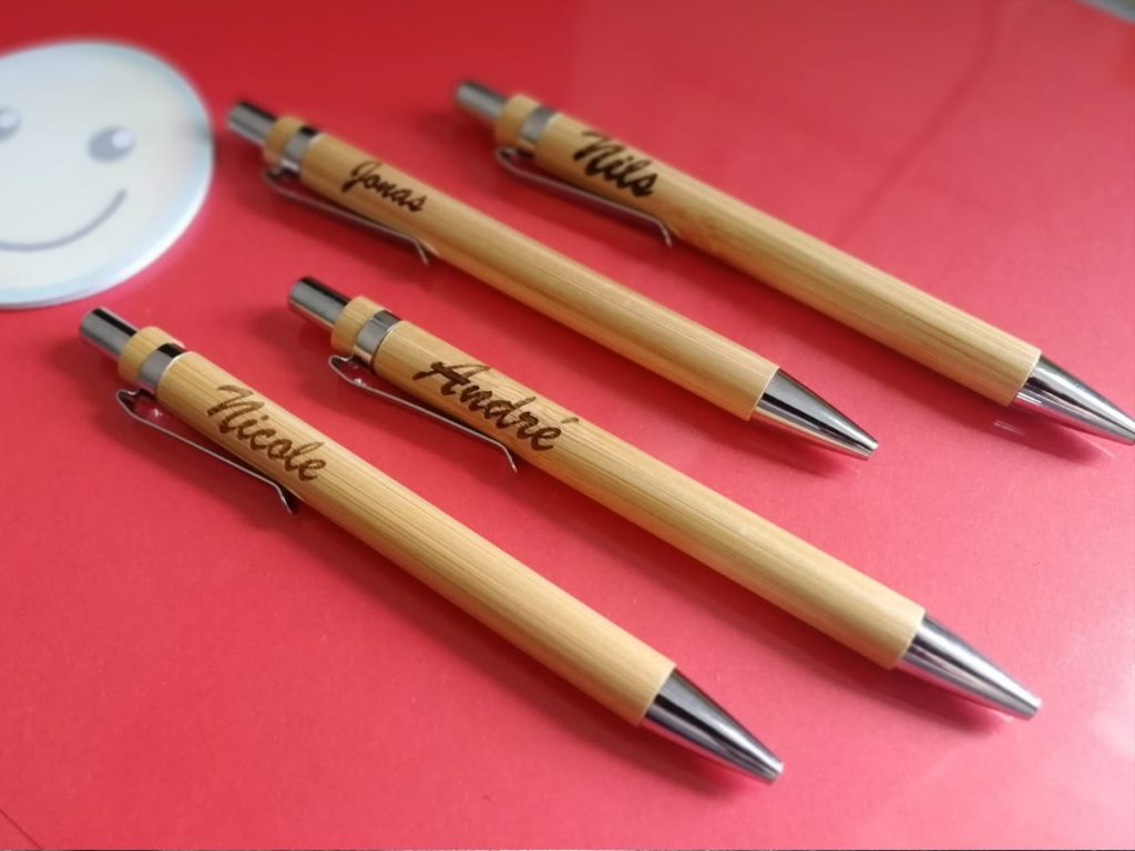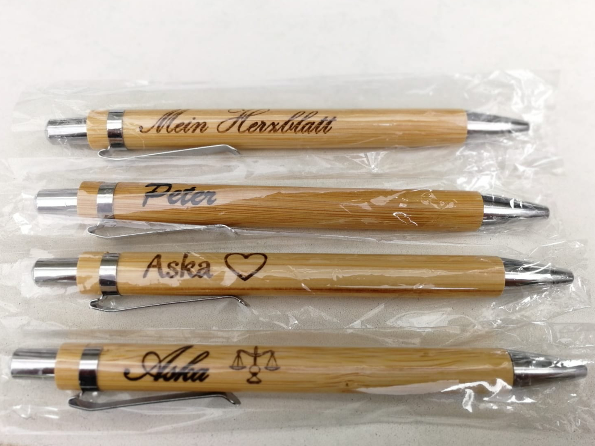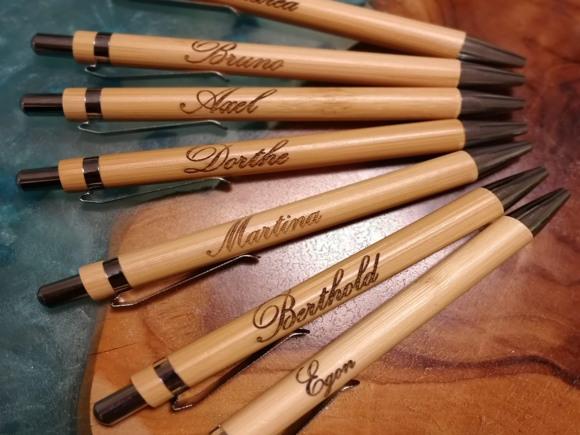 Mit der Lasergravur auf dem Stift können Sie einen beliebigen Text, eine Beschriftung, ein Logo oder ein Symbol auf seiner Oberfläche hinzufügen. Ein gravierter Kugelschreiber ist eine großartige Idee für ein Firmen- und persönliches Geschenk, ein unvergessliches Accessoire für viele Jahre.