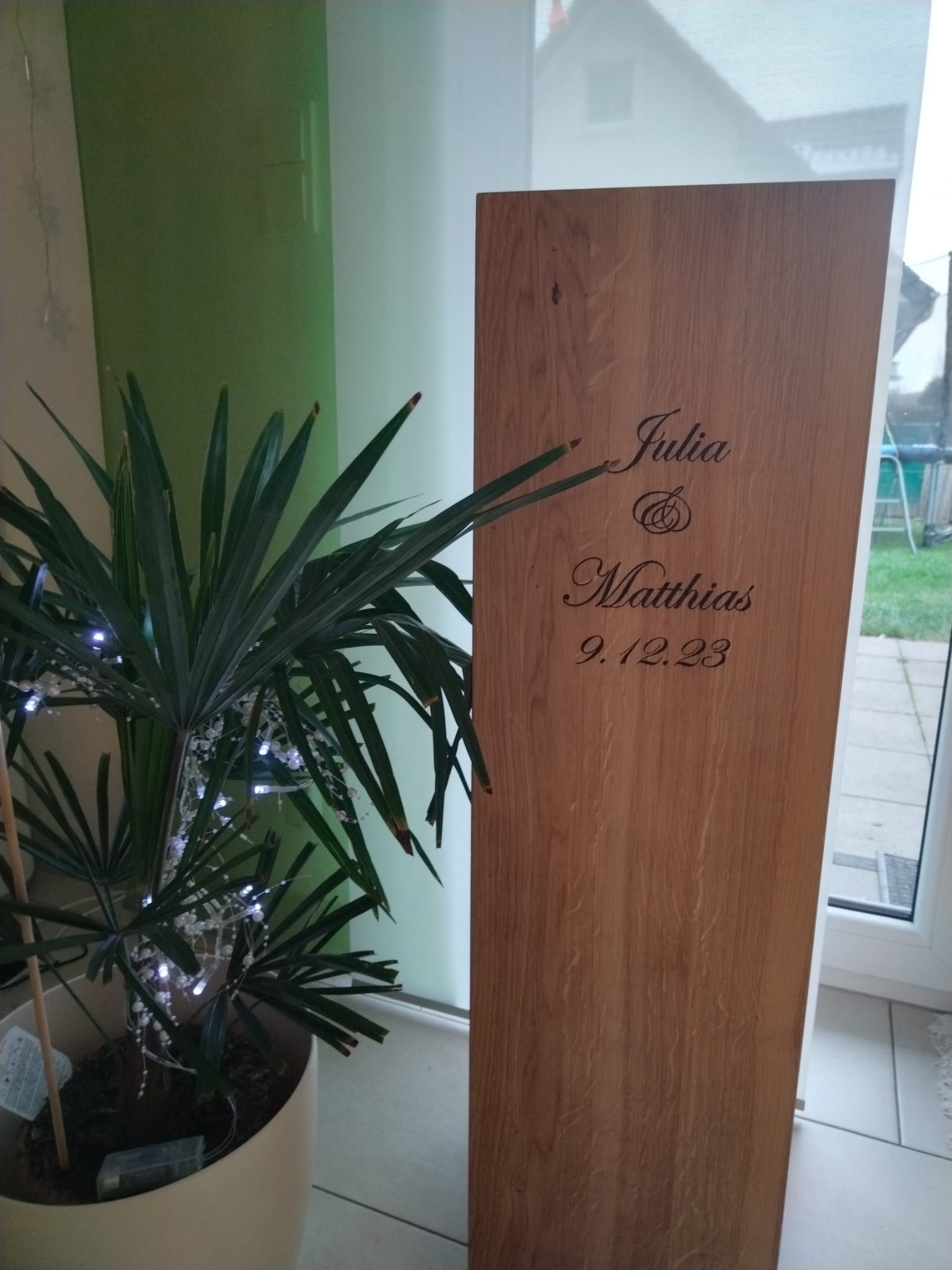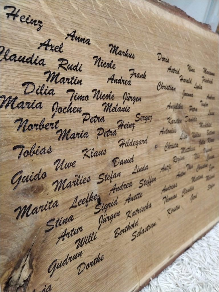 Die beliebteste und ästhetisch ansprechendste Art, ein Bild, einen Text oder ein Logo auf Holzoberflächen anzubringen. Geprägte Gravurmuster oder Logos sehen spektakulär und teuer aus und schmücken natürlich das Produkt.